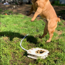 My dog, and kids, had so much fun with this! Easy to install! Kept them busy for a good 30 mins :) whenever we took it out, the dog would go crazy. The only downfall is he never figured out how to step on it, I wish the push button was off the device. He knew the water would spray out and he couldn’t avoid getting it in the face.