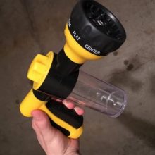 Find it hard to manually soap down your car or home windows for regular cleaning, then setting up the hose to wash everything? Our Multi-Purpose Hose Sprayer Nozzle cuts the work in half, with a built-in soap/cleanser chamber, all while offering three water-flow settings and eight different spray settings.