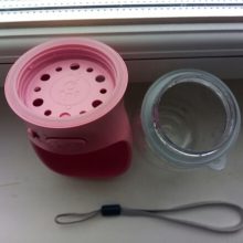 A press-and-hold button smartly dispenses water into the feeder spoon for on-demand hydration, whether you’re lying out at the beach or up in the hills hiking. A silica-gel ring inside the feeder spoon prevents leakage of water, while the spout features a water-reserve suction that sucks excess water back into the bottle to prevent waste or drips and spills (just hold the dispenser button down and tilt the water back toward the bottle spout). There is also a lock button to prevent accidental dispensal of water.